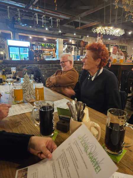 Auf dem Rückweg legte der Bus einen Zwischenstopp im „Maximilians Brauwiesen“ in Lahnstein ein. Bei gutem Essen und anregenden Gesprächen ließ die Gruppe den Tag in entspannter Atmosphäre ausklingen.